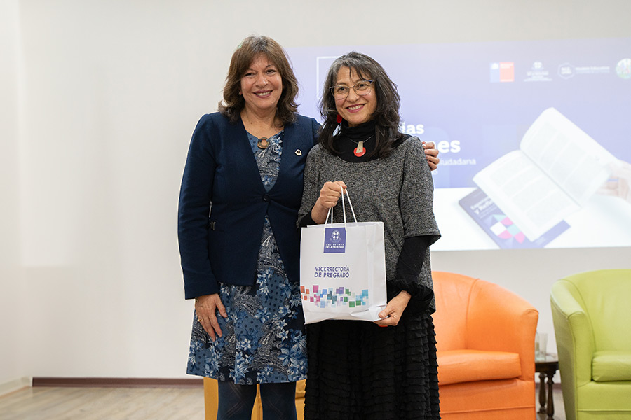 “Felicitar el trabajo que evidencia la participación, el compromiso y la cooperación entre académicos, académicas y profesionales UFRO para impactar en la calidad de la formación en ciudadanía en el Pregrado de nuestra institución pública. Además, tributa a los pilares de nuestro Modelo Educativo, y a nuestro compromiso con la formación integral como institución educativa”, destacó la vicerrectora Académica una vez concluida la ceremonia que, luego de la presentación de la Dra. Meza, consideró un panel de discusión que enfocó parte de su análisis a aspectos de género plasmados en el manuscrito.
